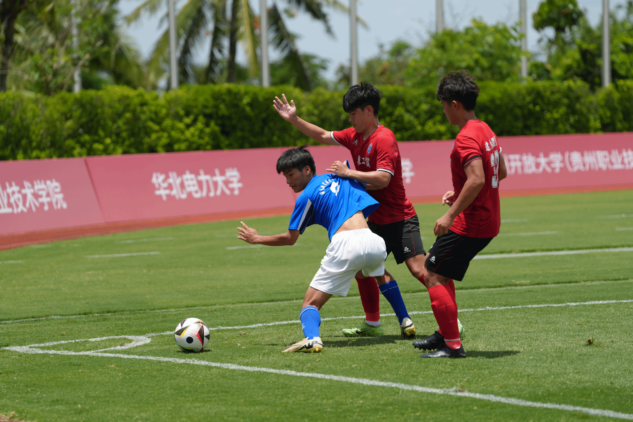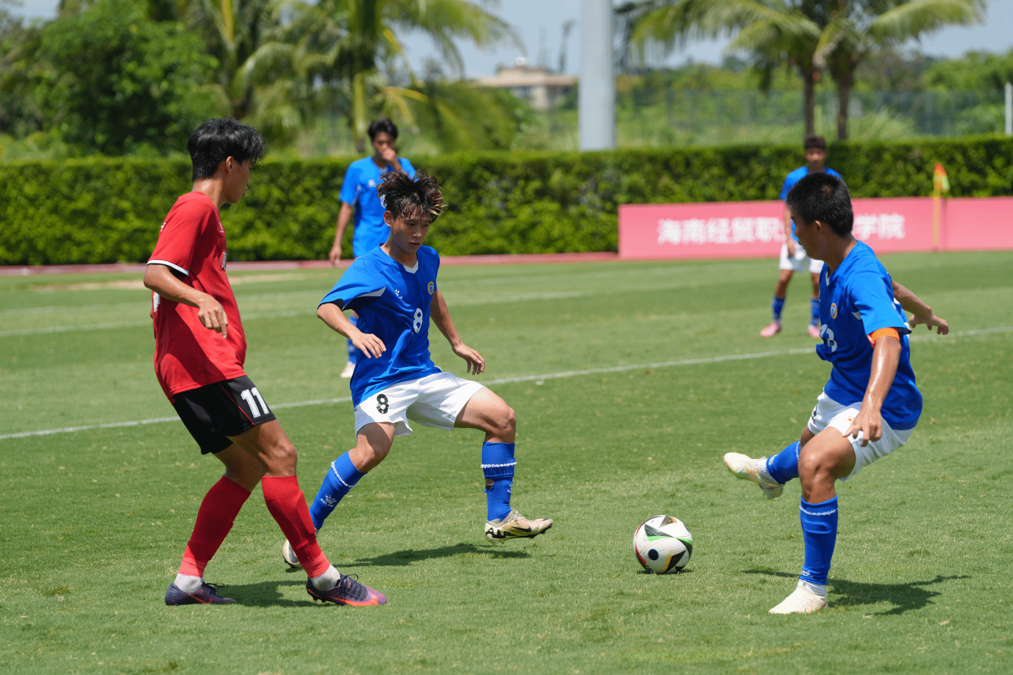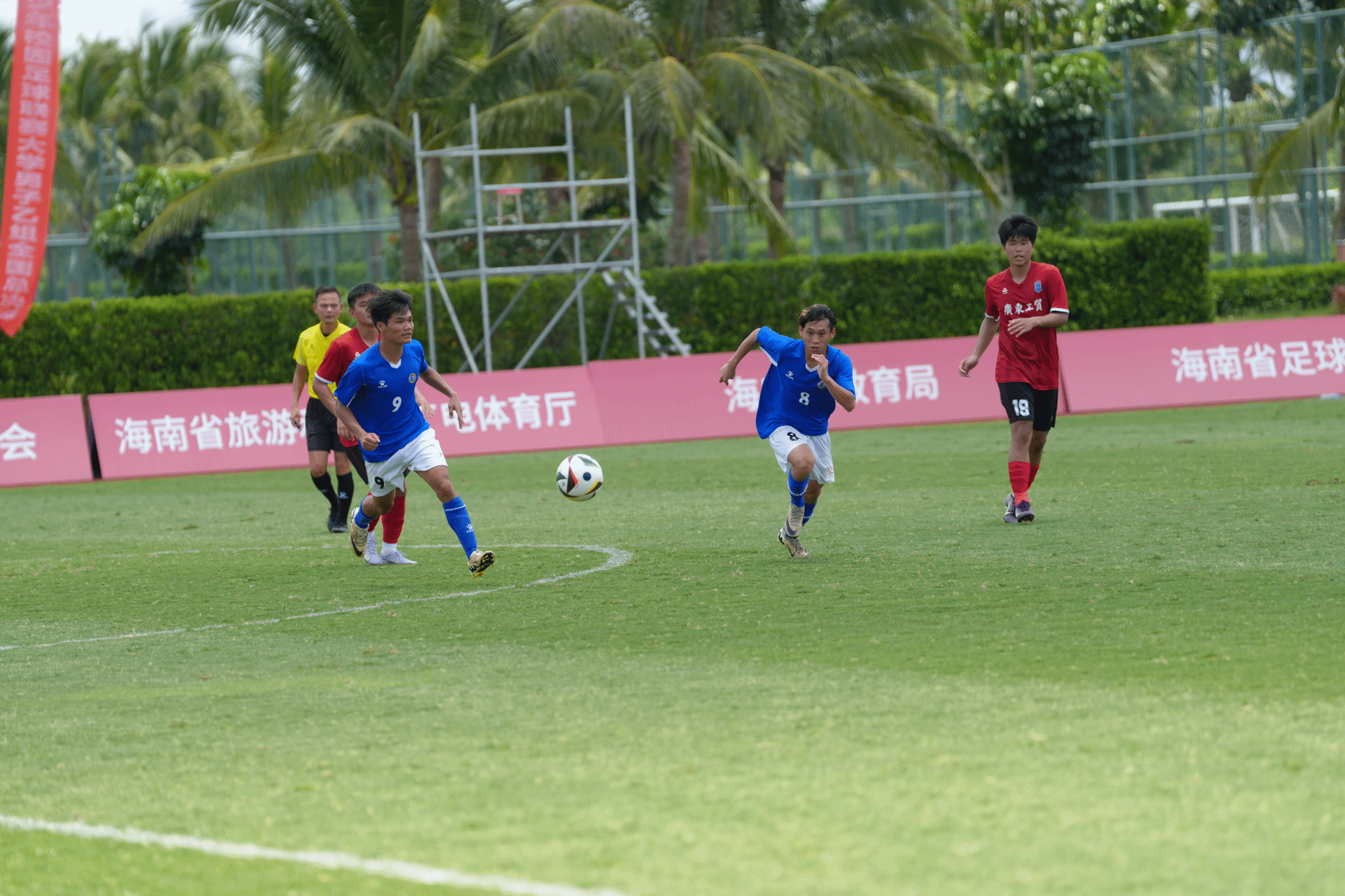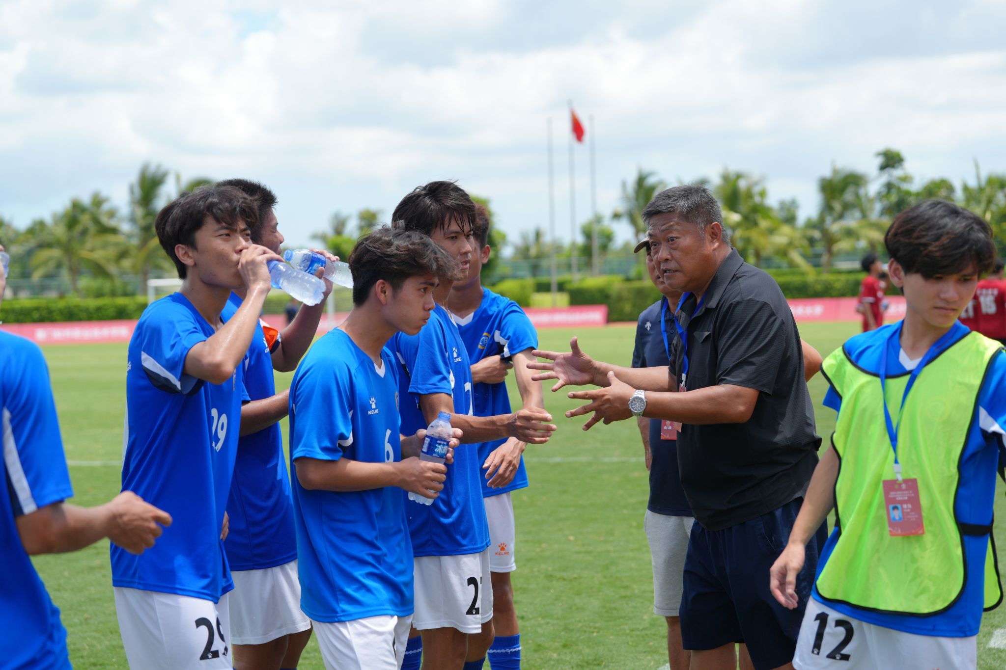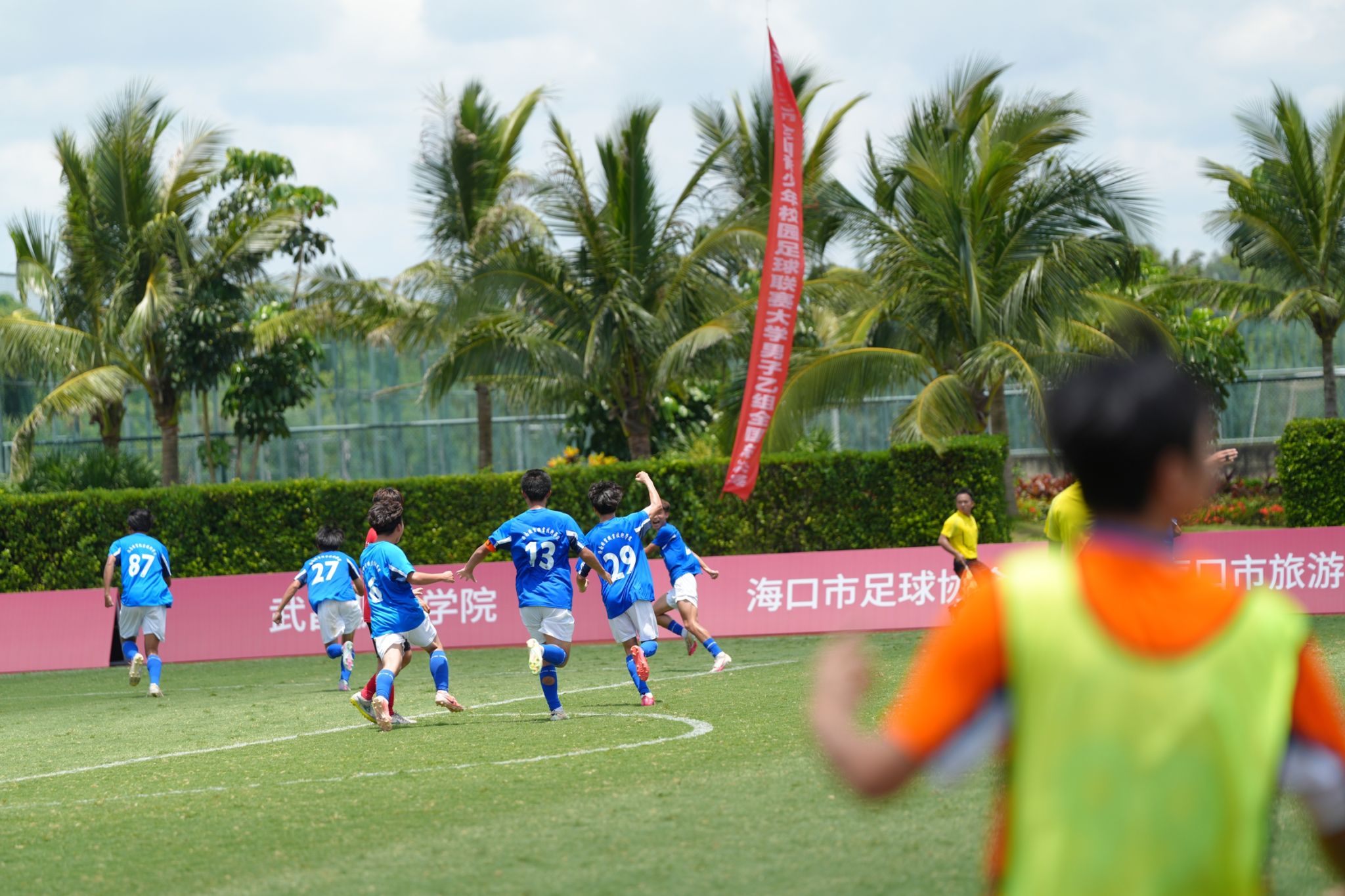据悉,全国青少年校园足球四级联赛由教育部主管,全国总决赛由中国学生体育联合会主办,共设大学男子甲组、大学女子甲组、大学男子乙组、大学女子乙组、高中男子组、高中女子组六个组别。本次大学男子乙组赛事由海南省教育厅、海口市人民政府协办,海南省旅游和文化广电体育厅、海南省足球协会海口市旅游和文化广电体育局、海口市足球协会支持,海南观澜湖实业发展有限公司承办,共有全国32支高校足球队参赛,800多名运动员在绿茵场上展开激烈角逐。